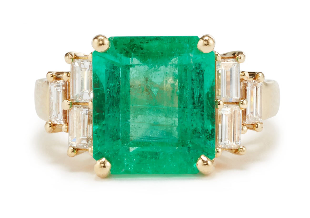 A rectangular emerald-cut emerald