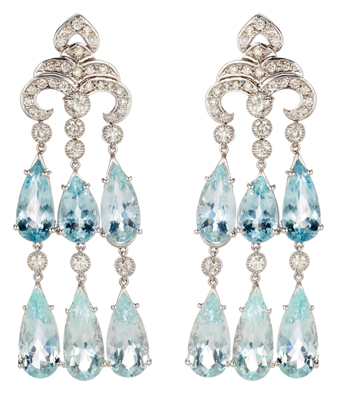 A Pair of Aquamarine, Diamond and Gold Earrings