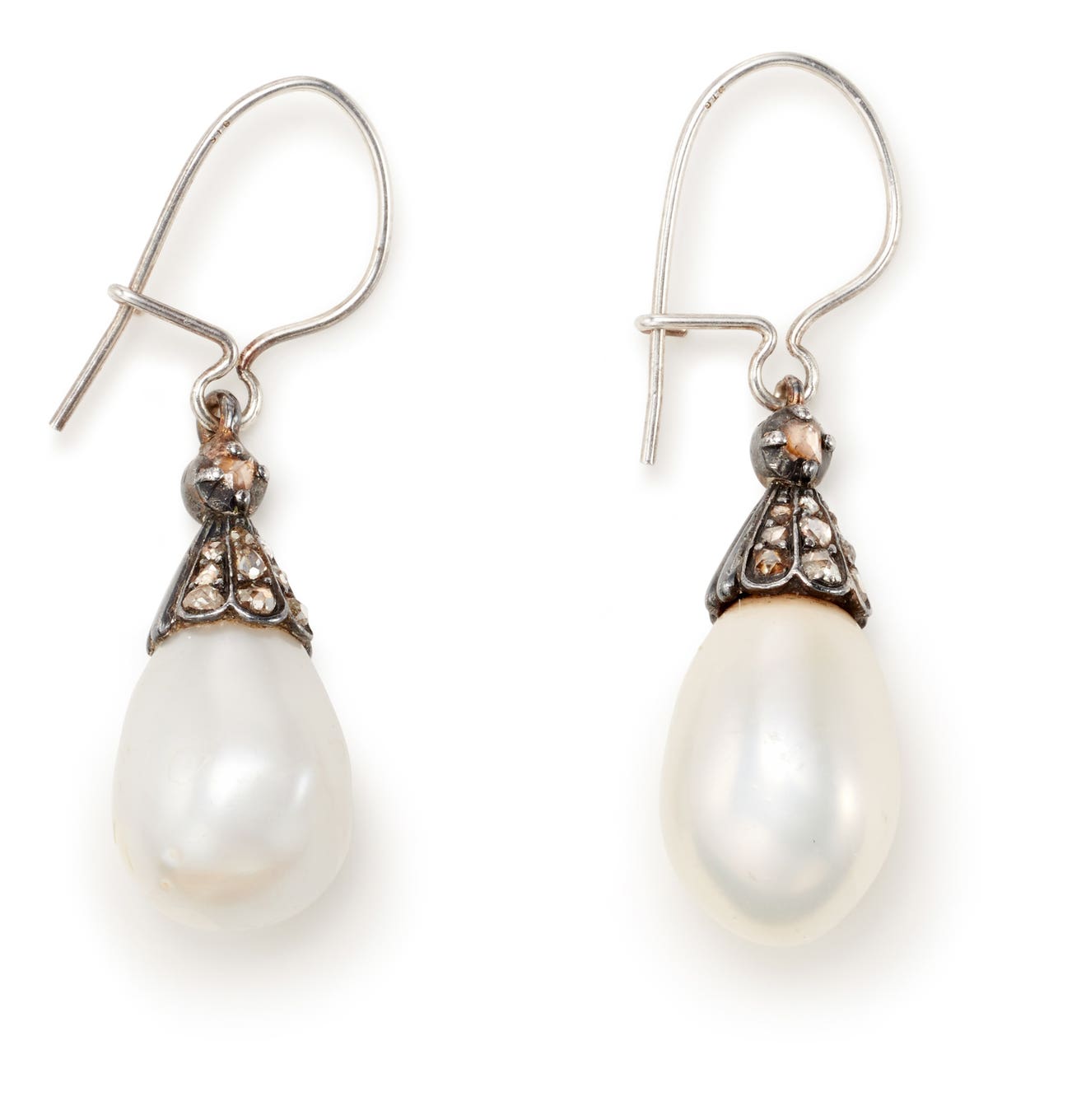 Drop-shaped pearls and rose-cut diamonds