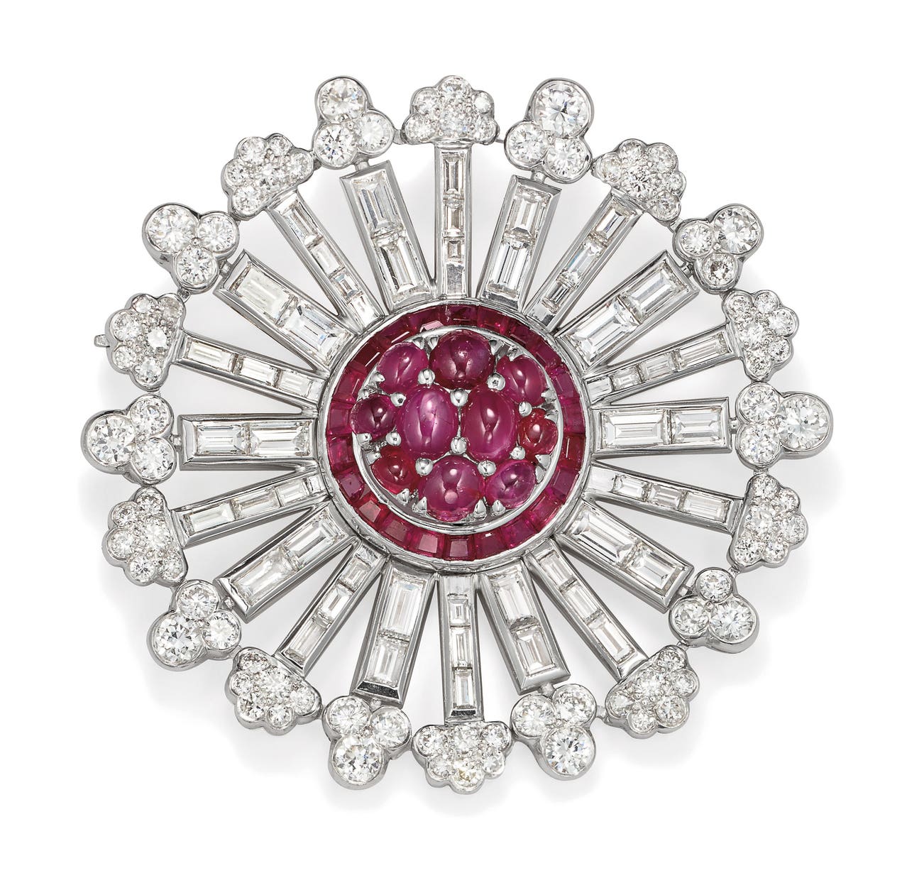 Round brilliant-, tapered baguette- and baguette-cut diamonds