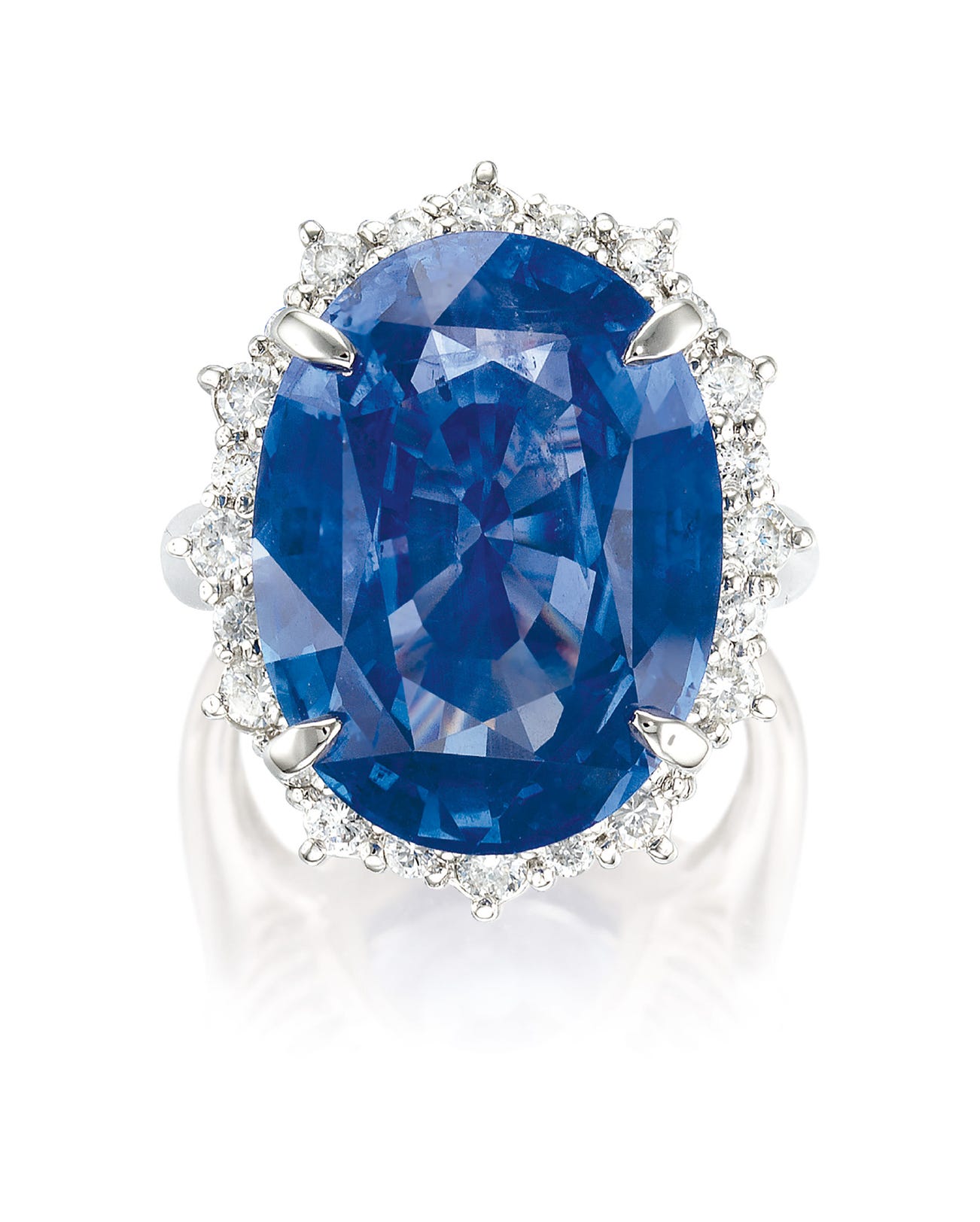One oval sapphire, 20.78 caratsSurrounded by brilliant-cut diamondsPlatinum(20.78-carat Sapphire)