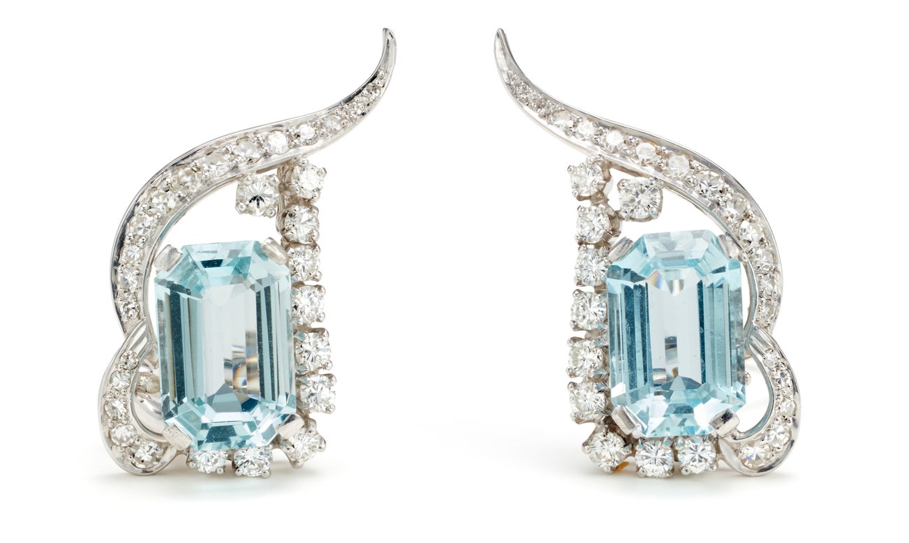 A Pair of Aquamarine, Diamond and Gold Earrings