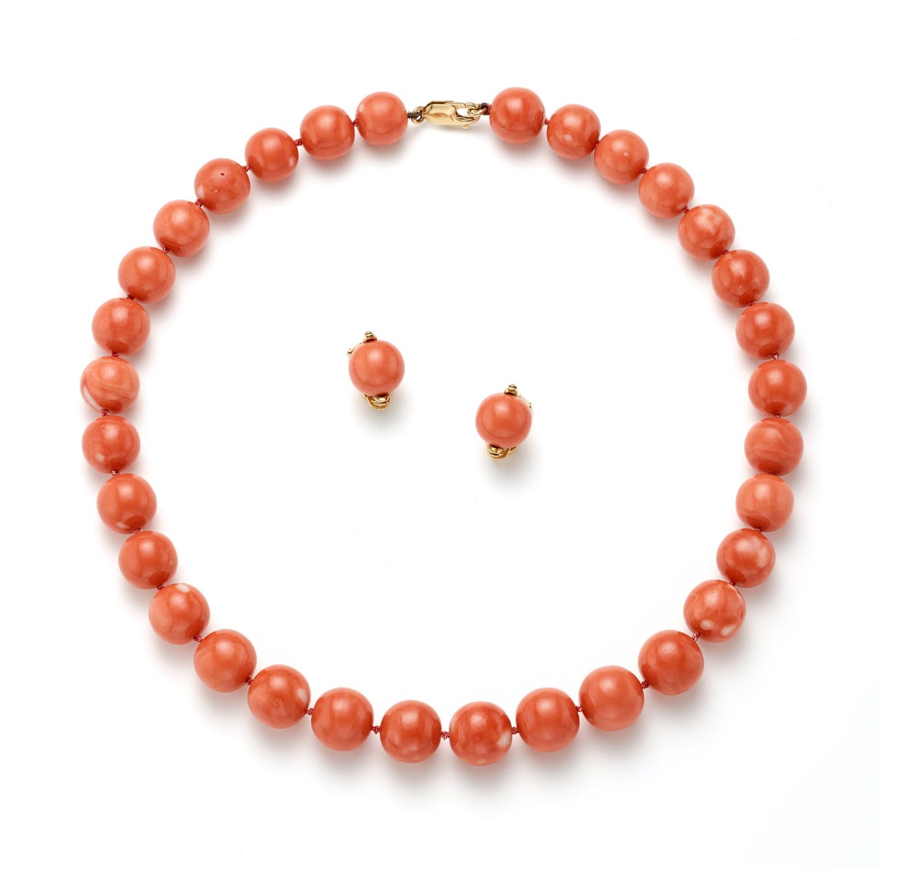 32 round coral beads, approximately 11.80mm to 13.20mm