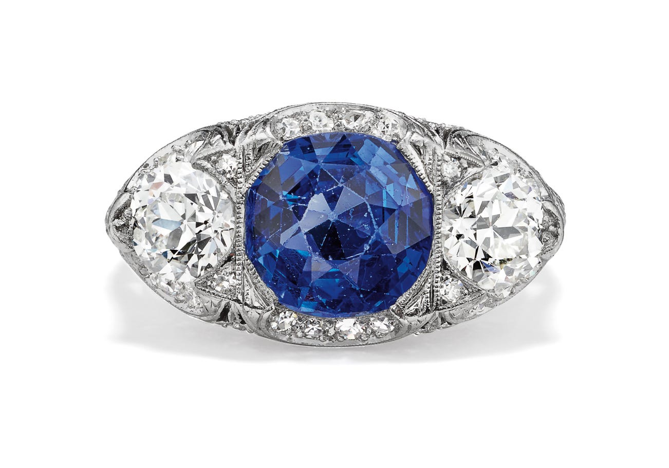 A Sapphire, Diamond and Platinum Ring