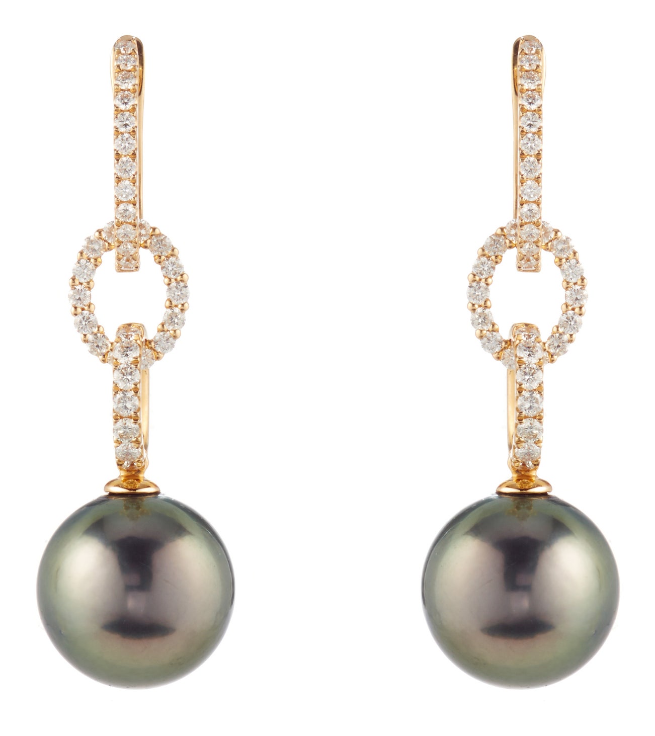 A Pair of Cultured Pearl, Diamond and Gold Earrings