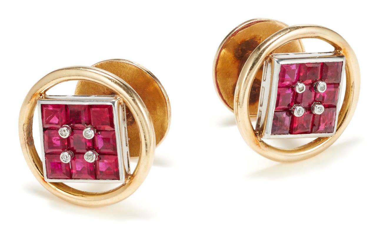 A Pair of Ruby, Diamond and Gold Cufflinks