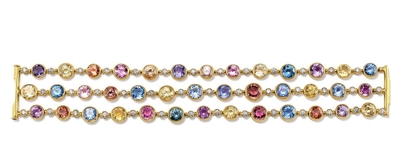 A Fancy Sapphire, Sapphire, Diamond and Gold Bracelet