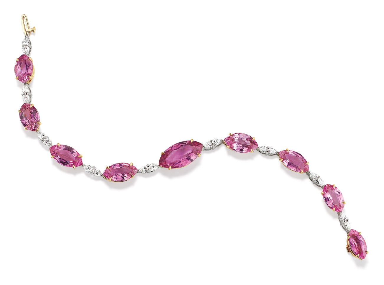 A Fancy Sapphire, Diamond, Platinum and Gold Bracelet