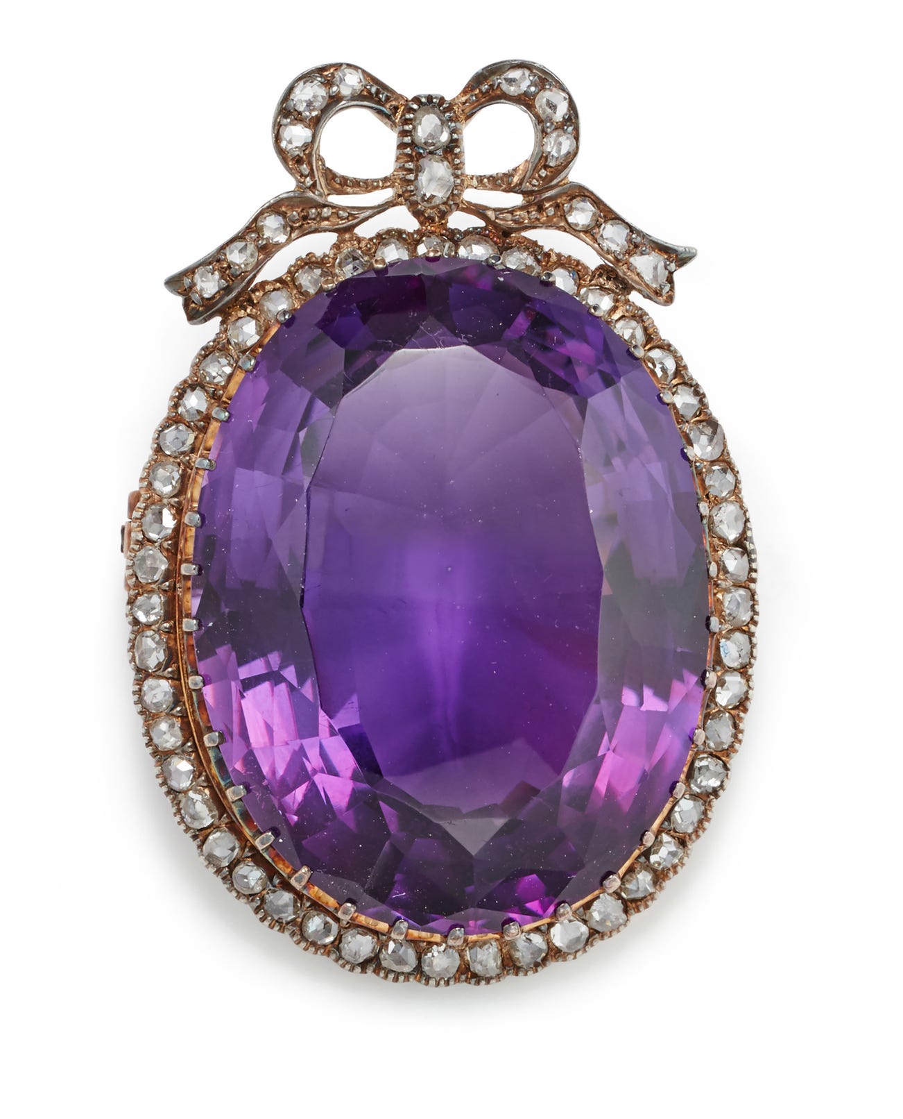 An Antique Amethyst, Diamond and Gold Brooch