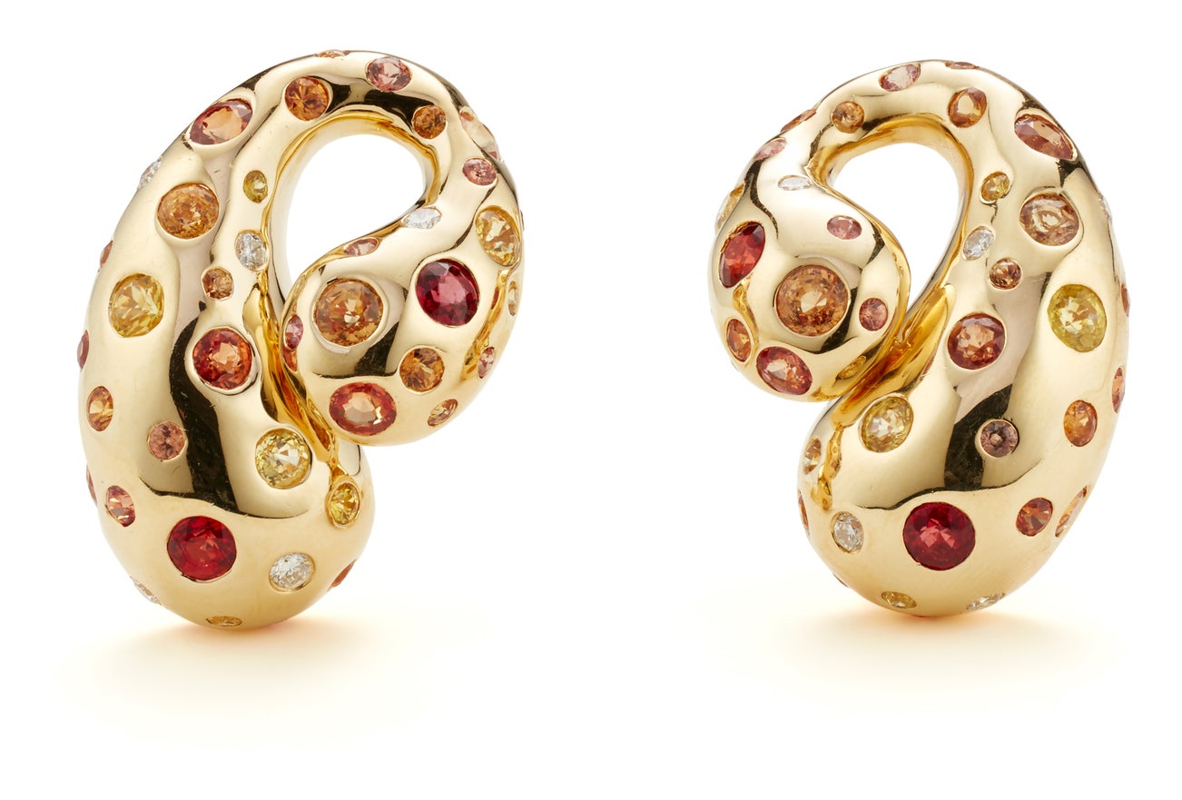 A Pair of Fancy Sapphire, Diamond and Gold Earrings