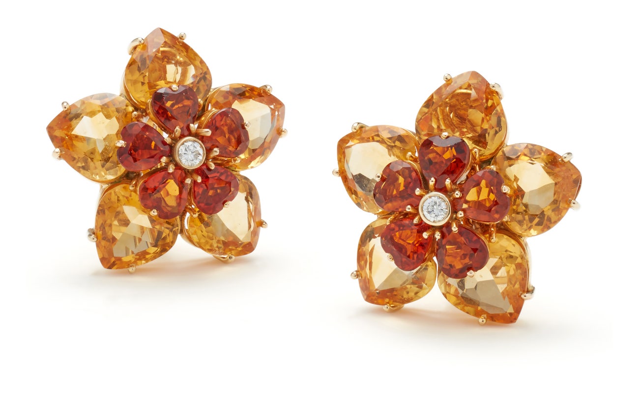 A Pair of Citrine, Diamond and Gold Earrings