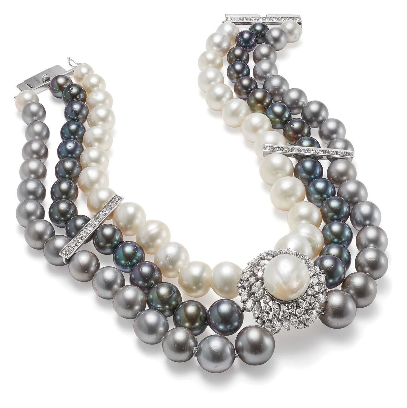 A Cultured Pearl, Diamond and Gold Necklace