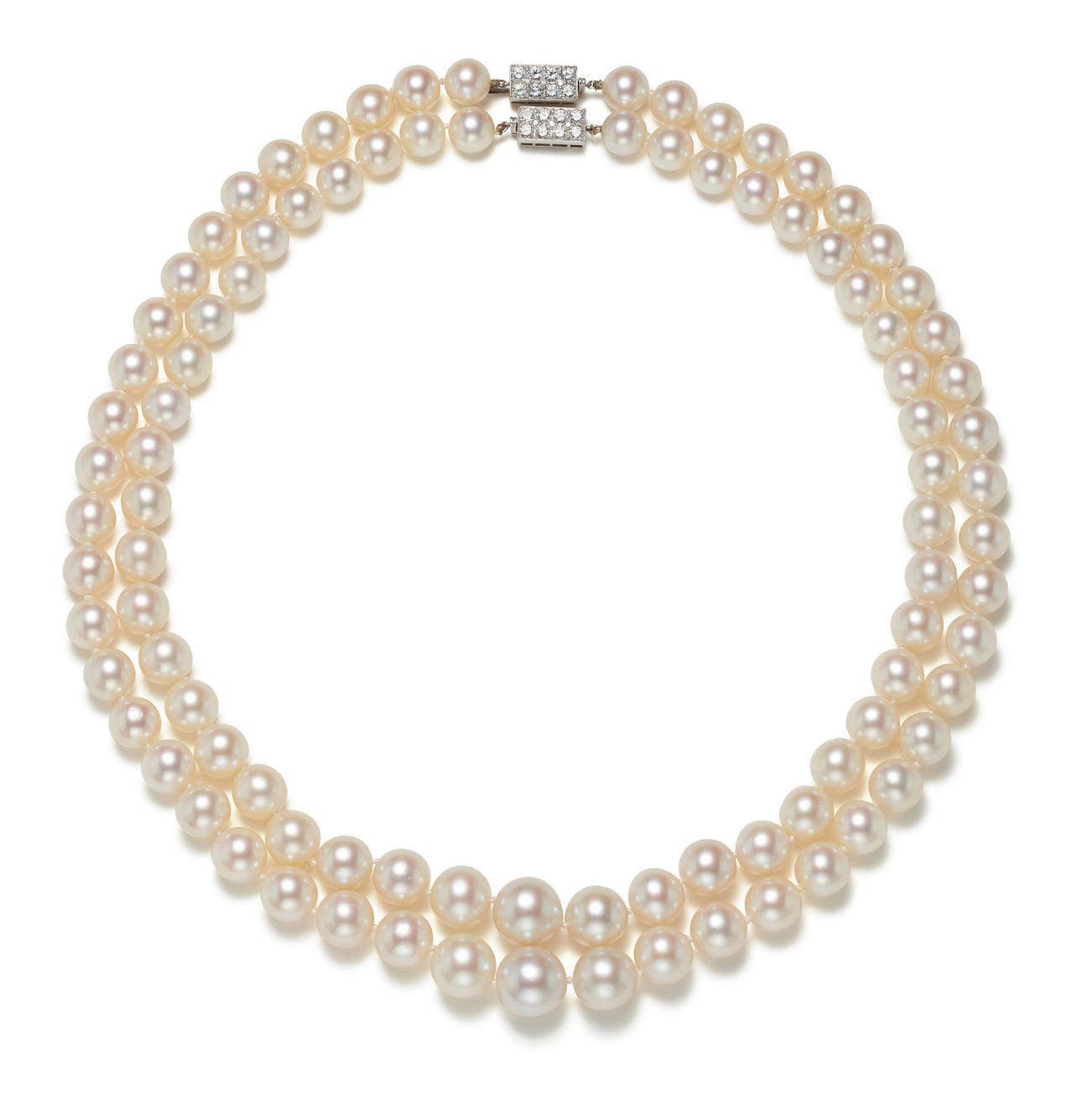 A Companion Pair of Cultured Pearl and Diamond Necklaces