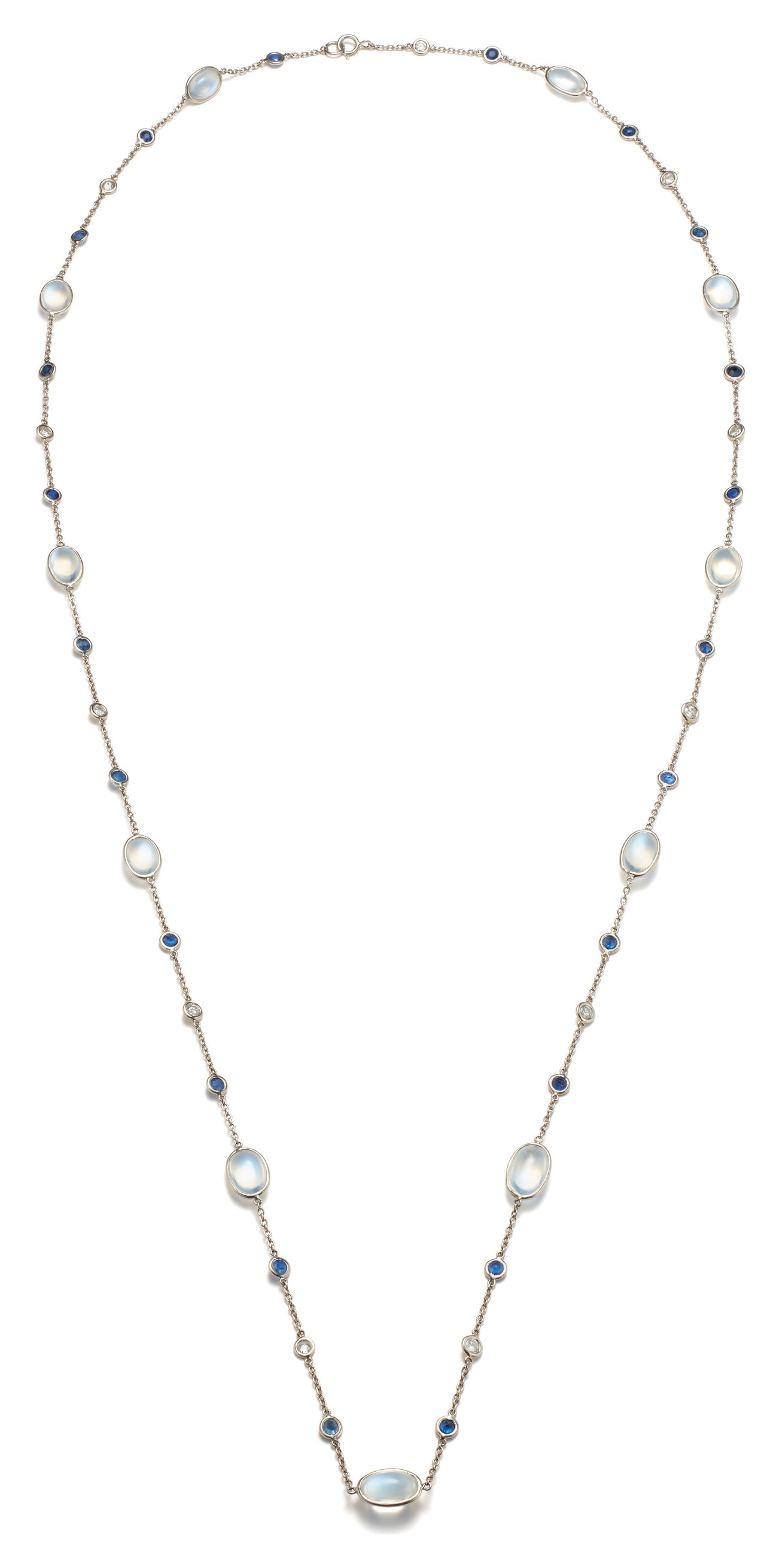 A Moonstone, Sapphire, Diamond and Platinum Necklace