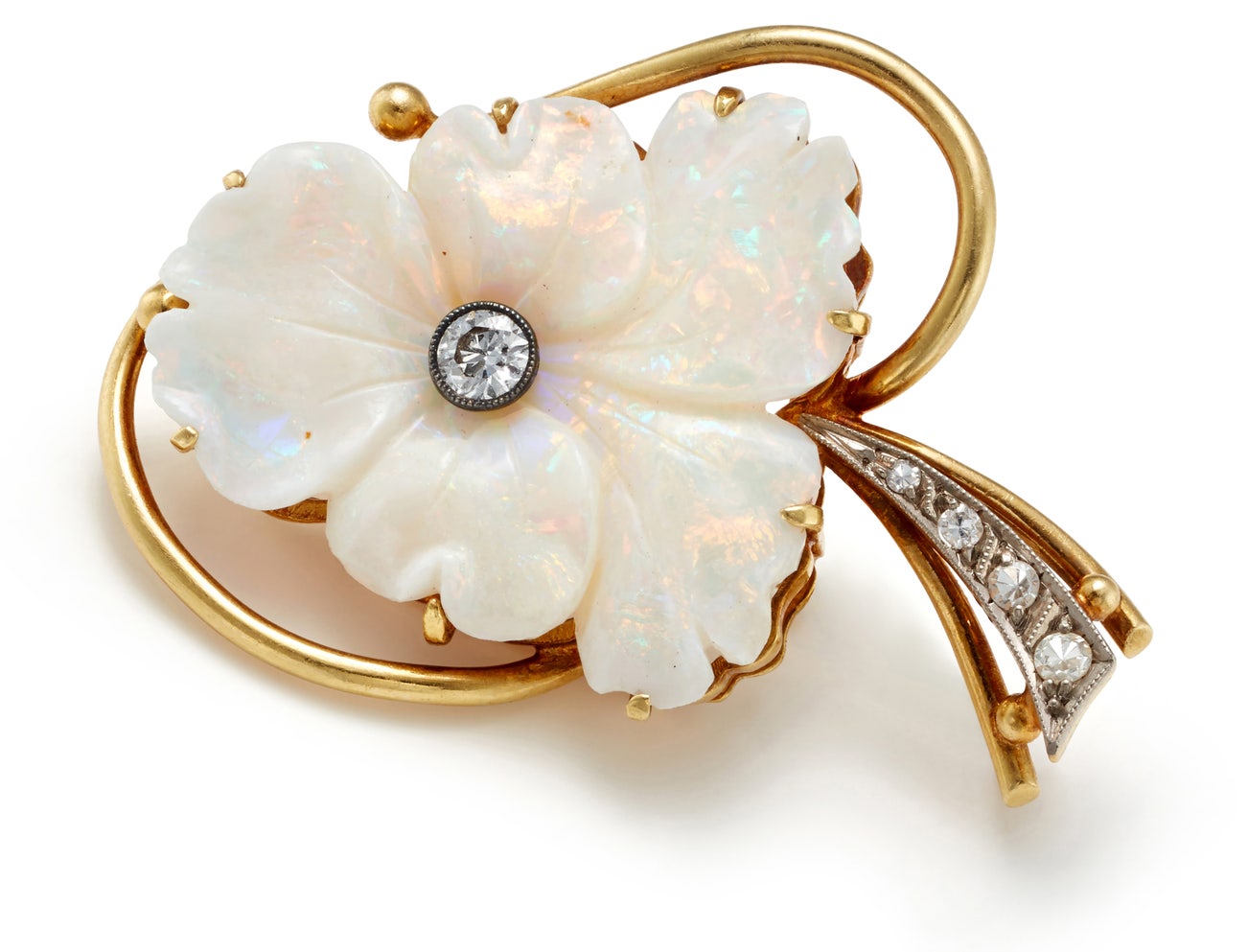 An Opal, Diamond and Gold Brooch