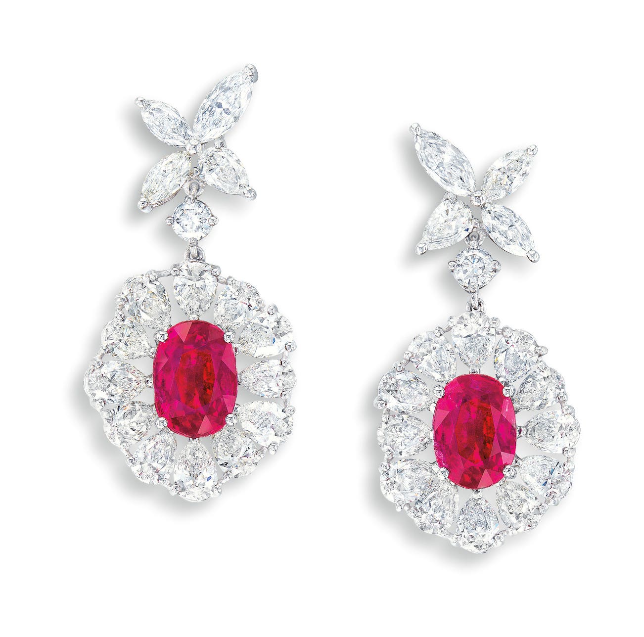 Two oval rubies, 3.12 and 3.04 caratsDiamonds in the surround and surmount, totalling approximately 8.70 caratsPlatinum(3.12- and 3.04-carat Rubies)