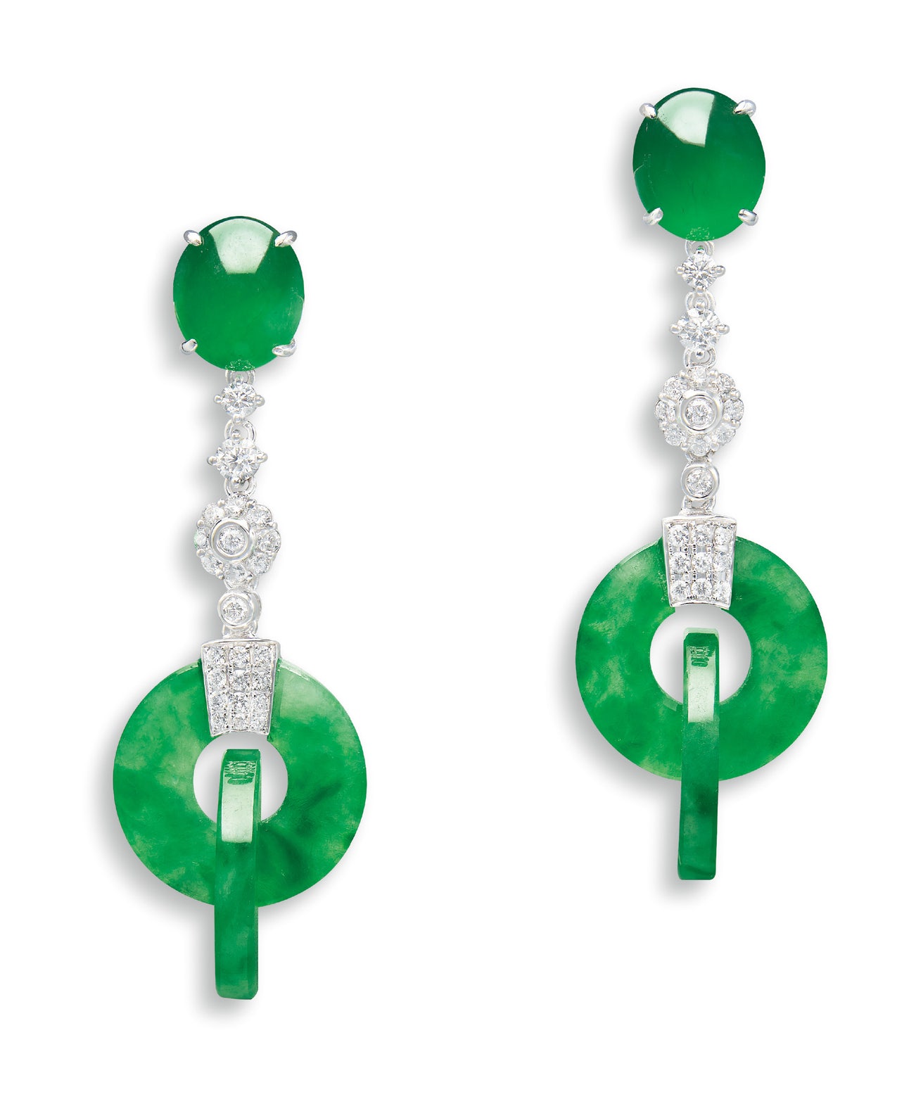 A Pair of Jadeite Double-hoop and Diamond Pendent Earrings