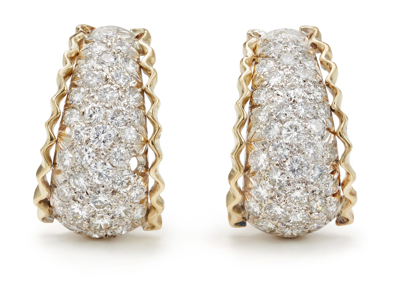 A Pair of Diamond and Gold Earrings