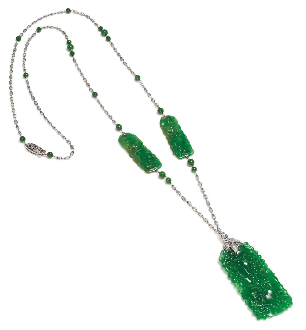 An Art Deco Jadeite Jade, Jade, Diamond and Platinum Sautoir