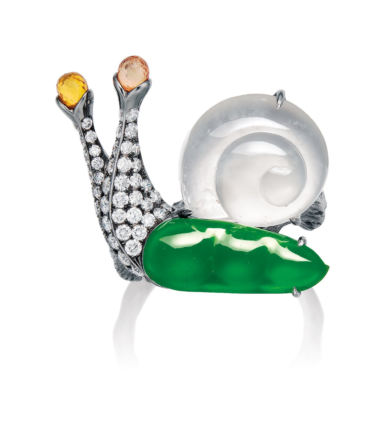 A Whimsical Jadeite, Icy Jadeite and Diamond 'Snail' Ring, Mason Tsai