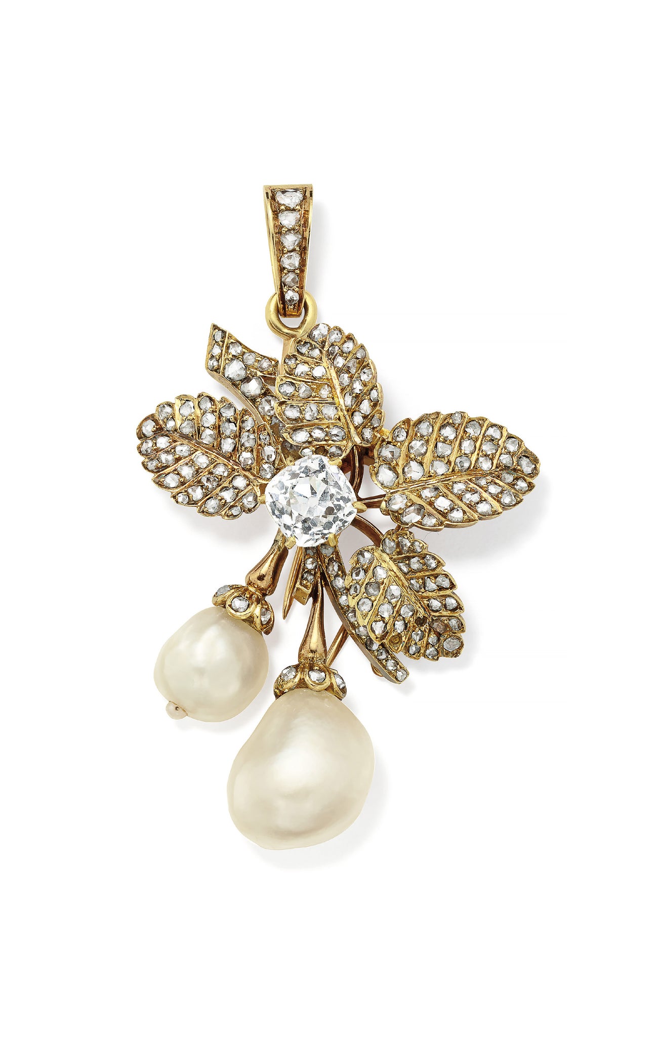 An Antique Natural Pearl, Diamond and Gold Brooch/Pendant