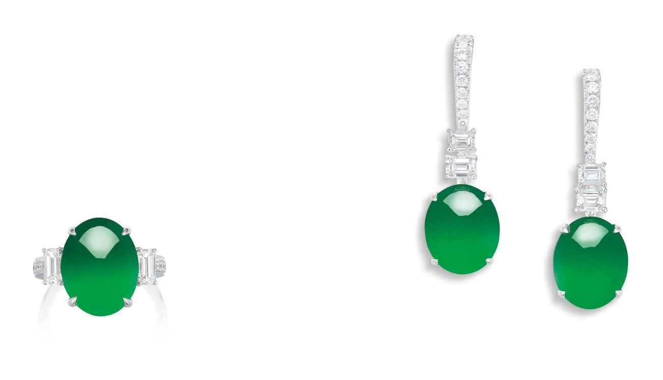 A Jadeite Cabochon and Diamond Demi-parure