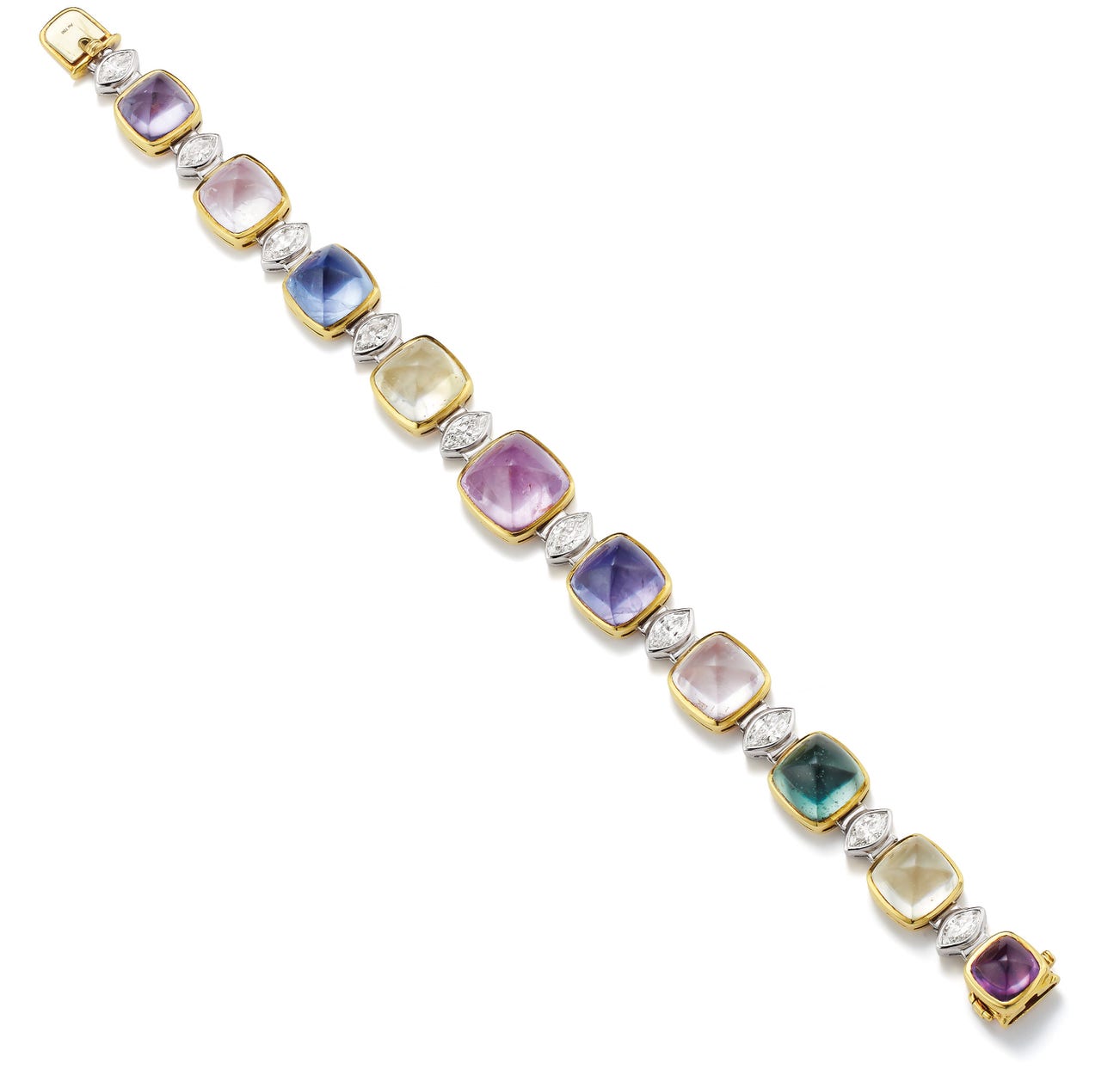 A Fancy Sapphire, Diamond, Platinum and Gold Bracelet