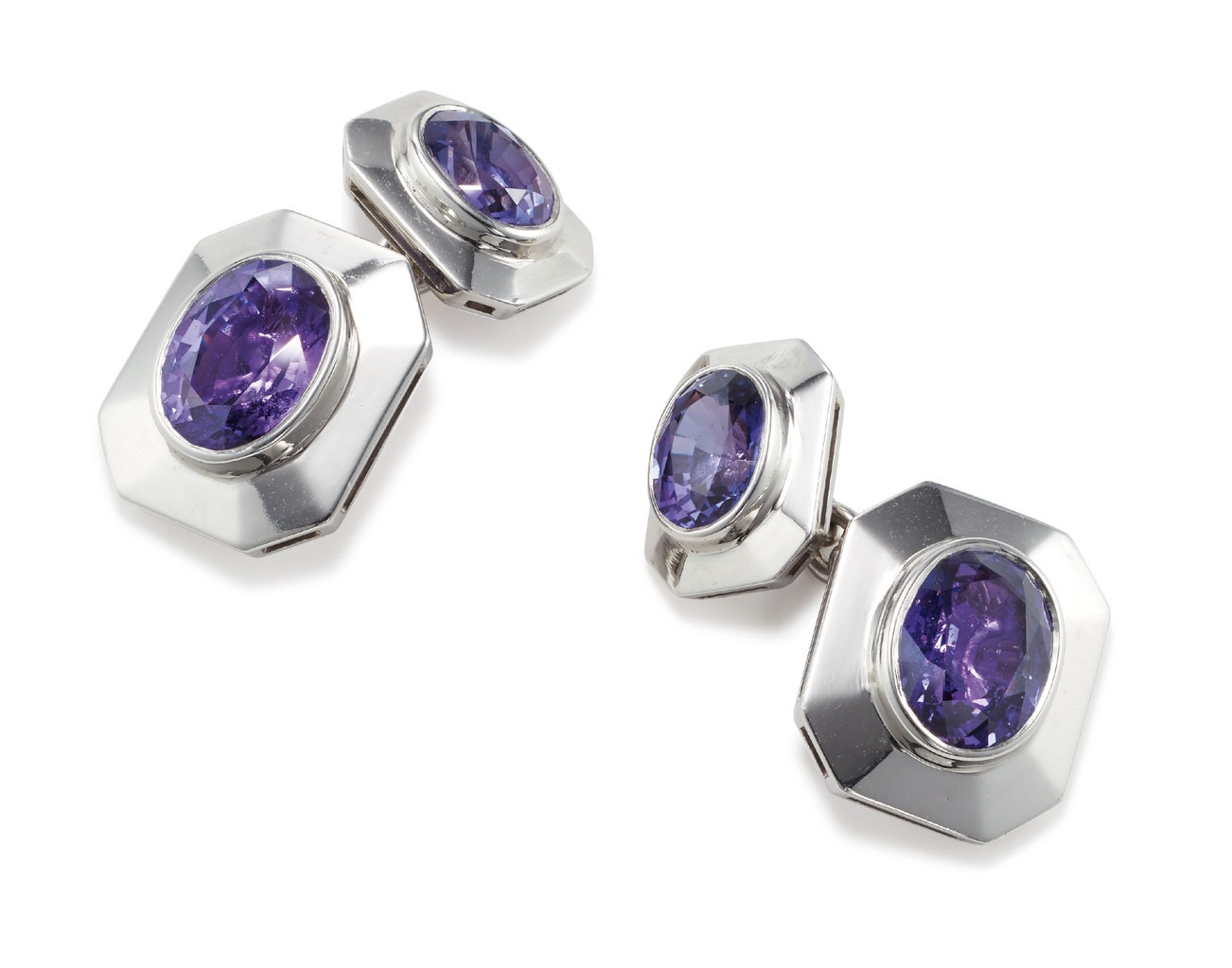 A Pair of Fancy Sapphire and Platinum Cufflinks