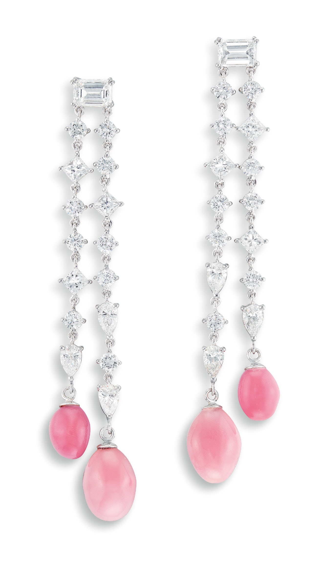 Four ovoid-shaped conch pearls, totalling approximately 12.70 caratsBrilliant-cut and fancy-shaped diamonds, altogether approximately 4.00 caratsPlatinum(Conch Pearls)