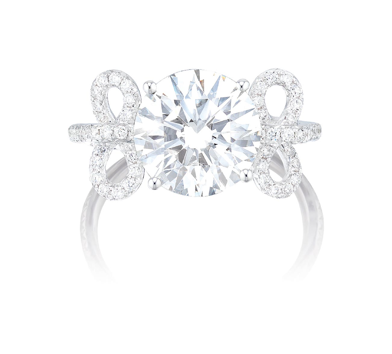 One brilliant-cut diamond, 3.07 caratsDiamond-set bow knot decorations and shank18 karat white gold(3.07-carat Diamond)