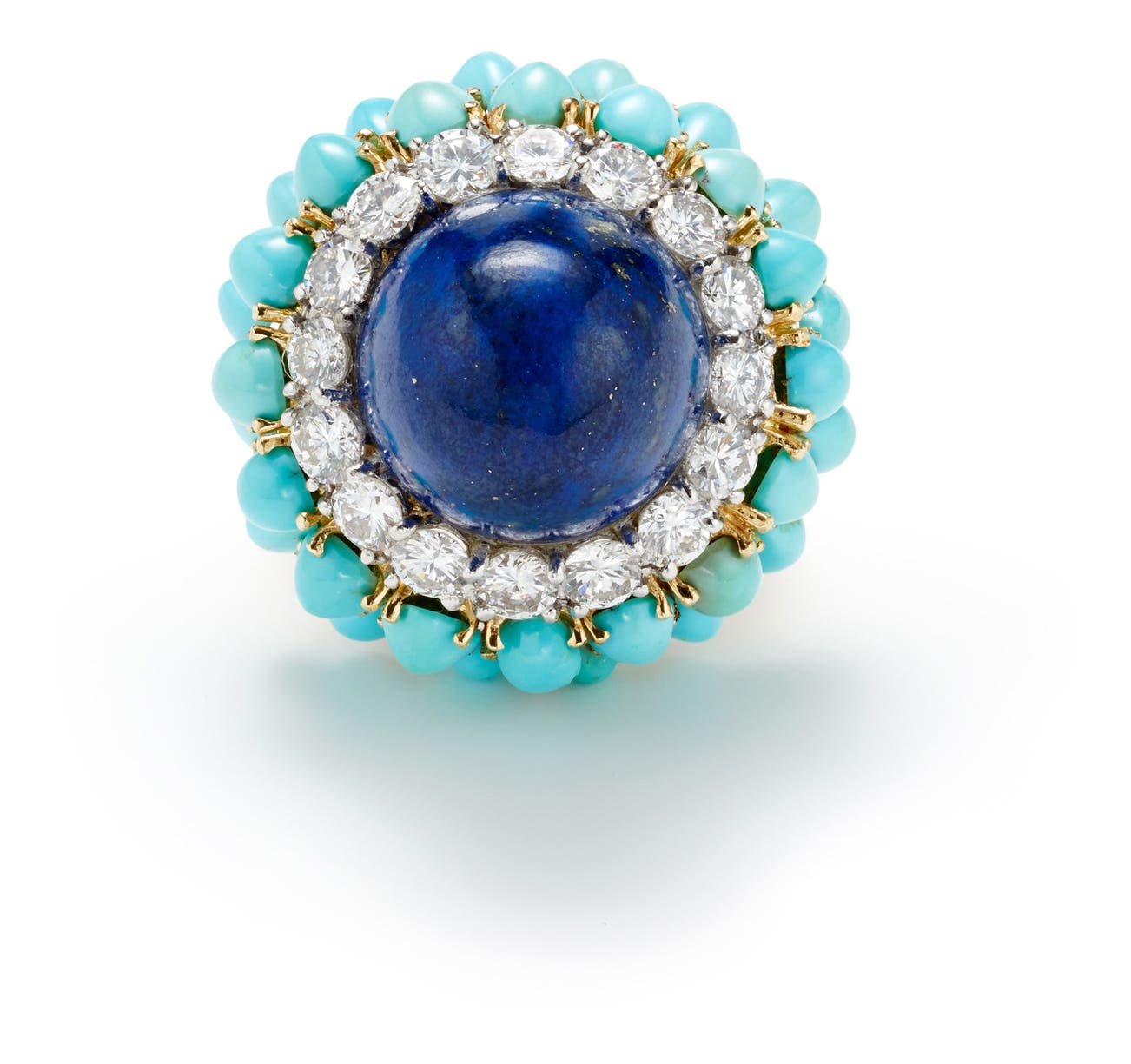 A Lapis Lazuli, Diamond, Turquoise and Gold Ring