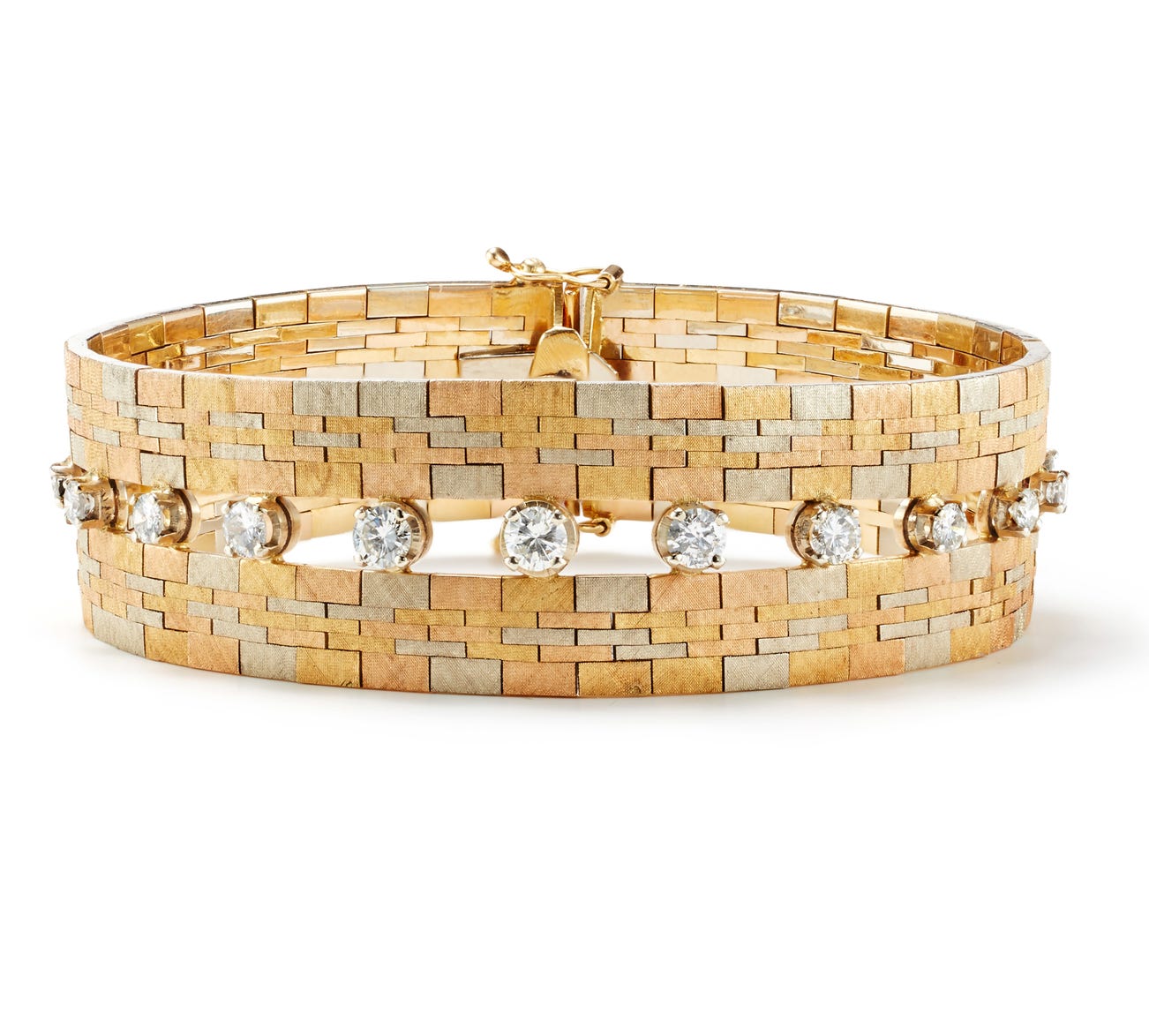 18 karat yellow, white and rose gold, length approximately 7.25 inches