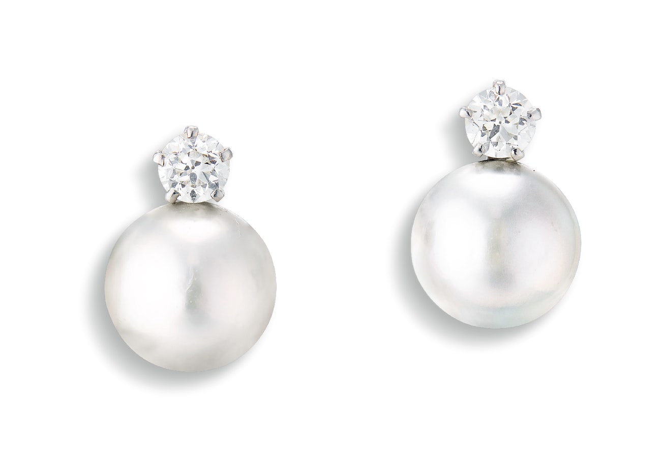 Two brilliant-cut diamonds in the surmountsPlatinum(Two natural pearls)