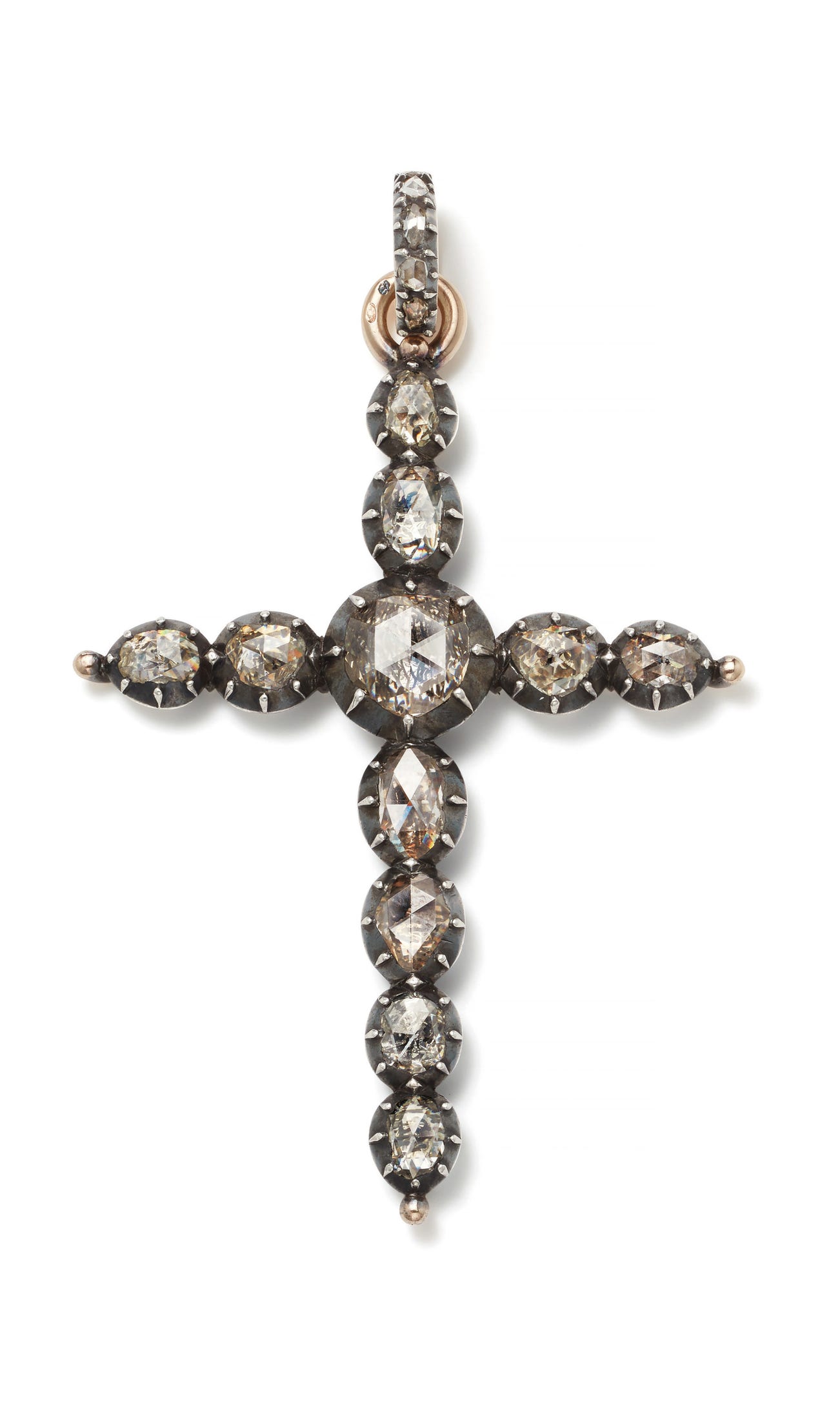 A Diamond, Gold and Silver-Topped Gold ‘Cross’ Pendant