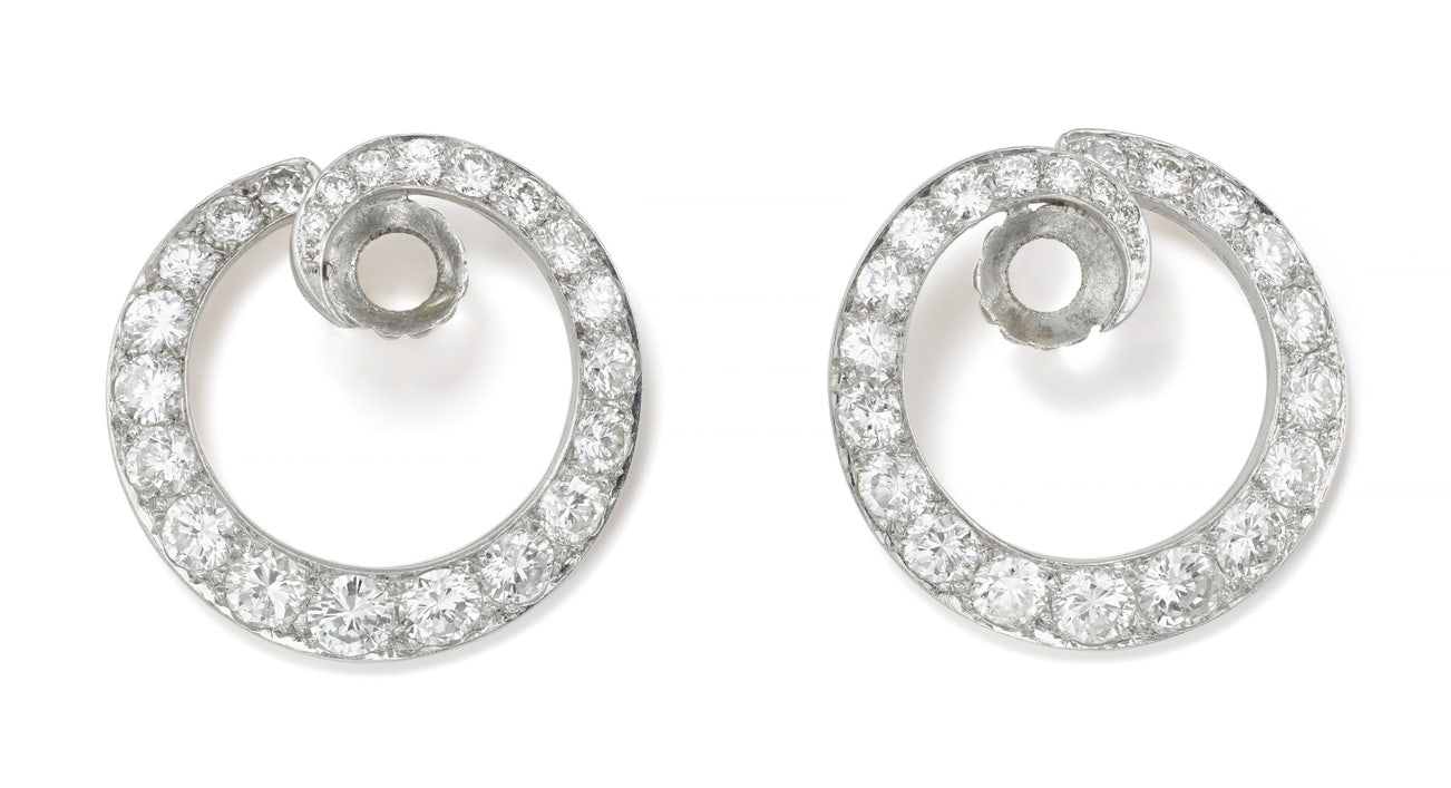 A Pair of Diamond and Platinum Earring Jackets