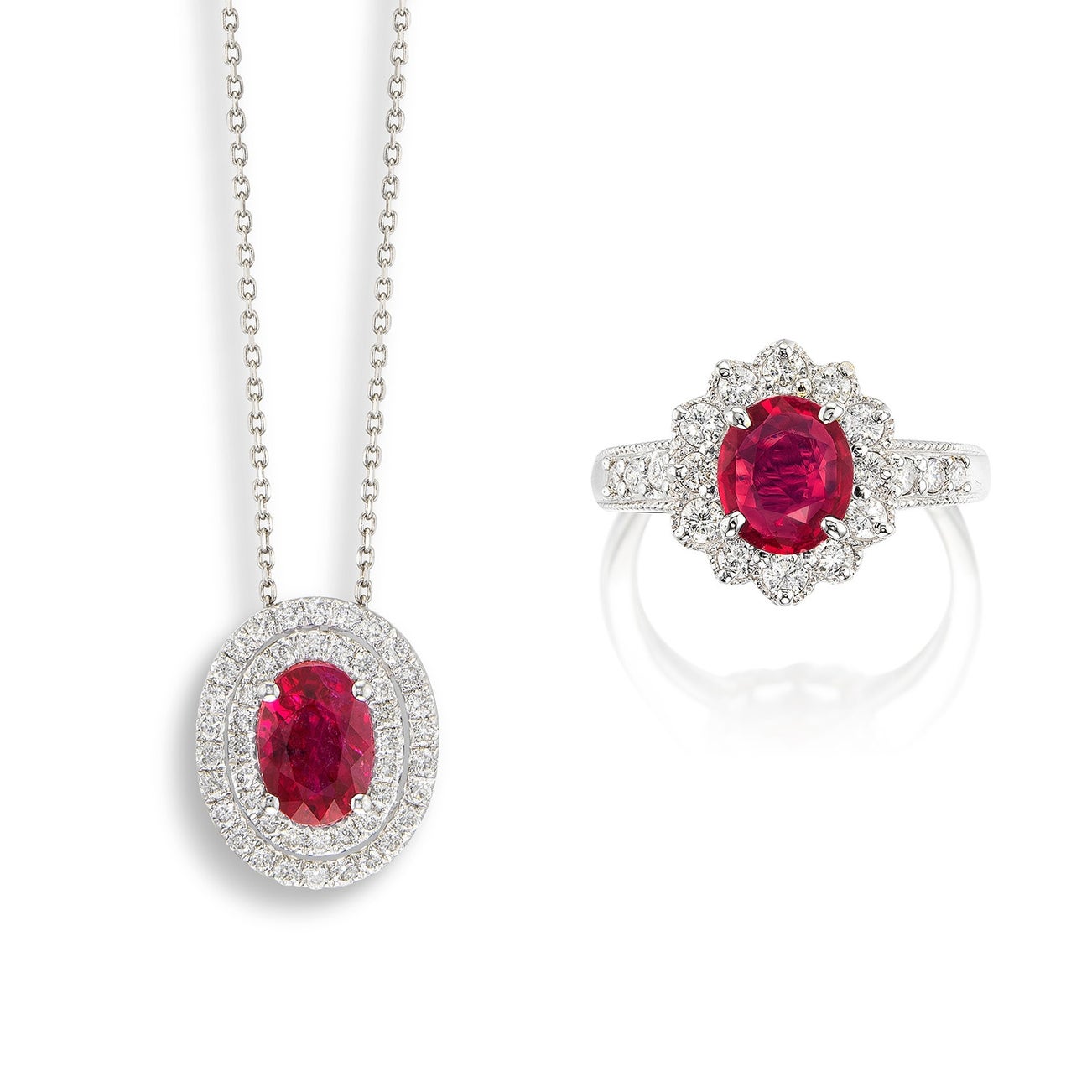 A Ruby and Diamond Ring, and A Ruby and Diamond Pendant Necklace