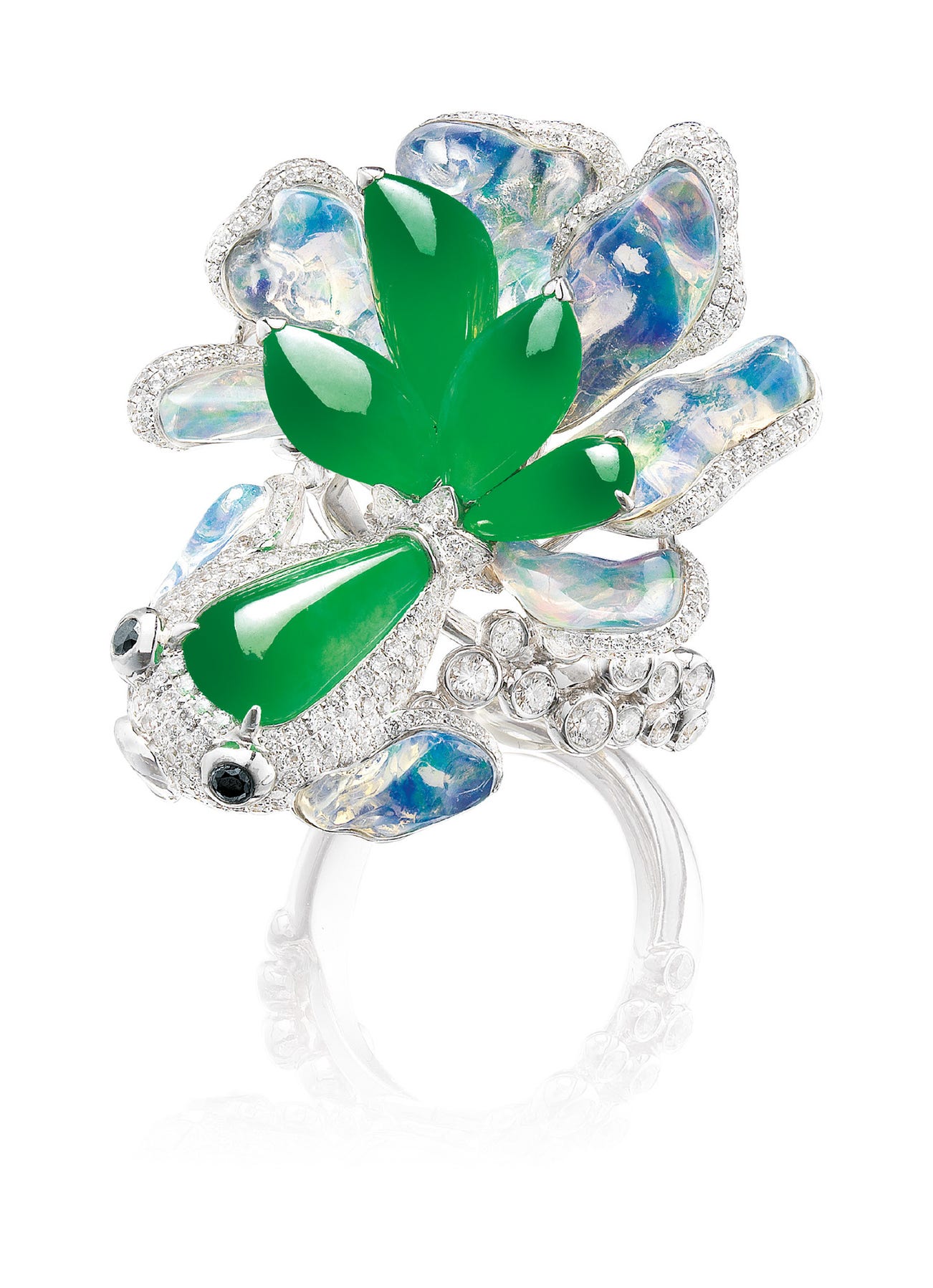 A Whimsical Jadeite, Opal and Diamond 'Fish' Ring/Pendant