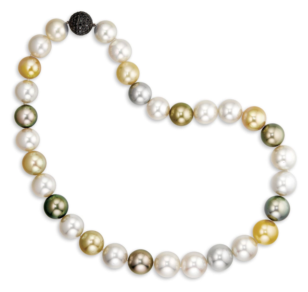 A Multi-coloured Cultured Pearl and Black Diamond Necklace