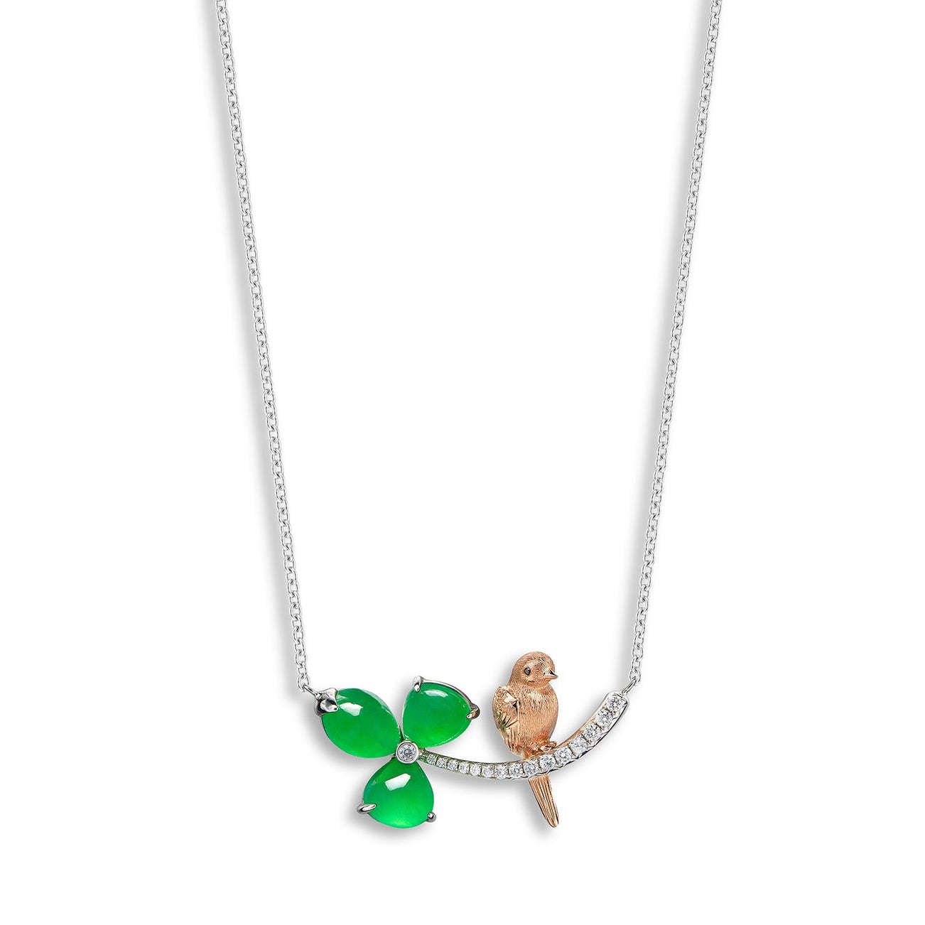 A Jadeite and Diamond 'Trifolium and Bird' Necklace
