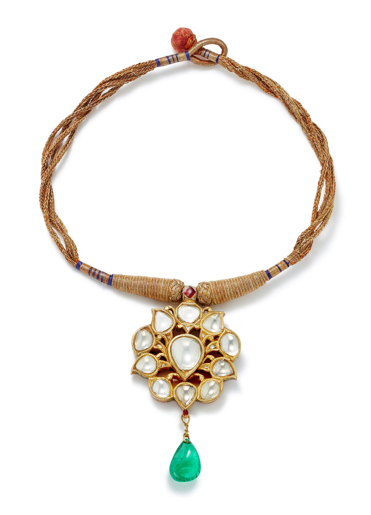An Emerald, Diamond and Enamel Pendant with Gold Cord