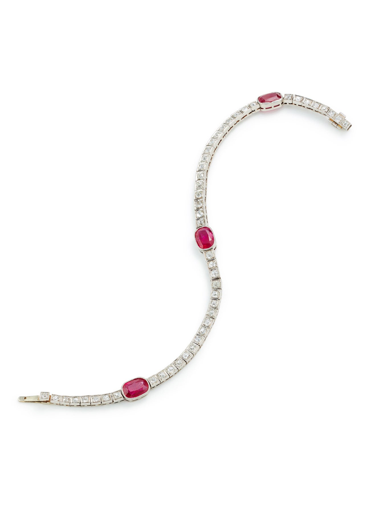 An Art Deco Ruby, Diamond and Platinum Bracelet