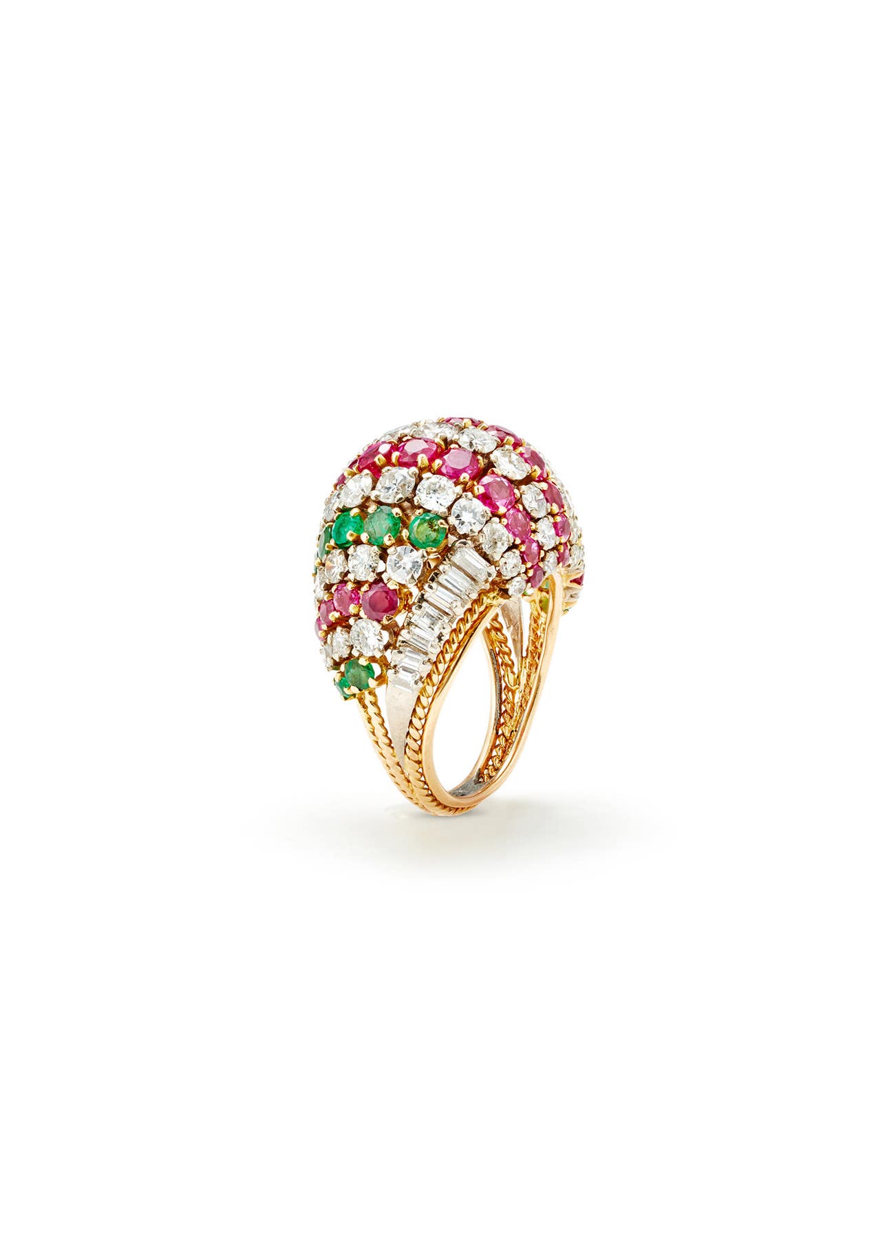 A Diamond, Ruby, Emerald and Gold Ring