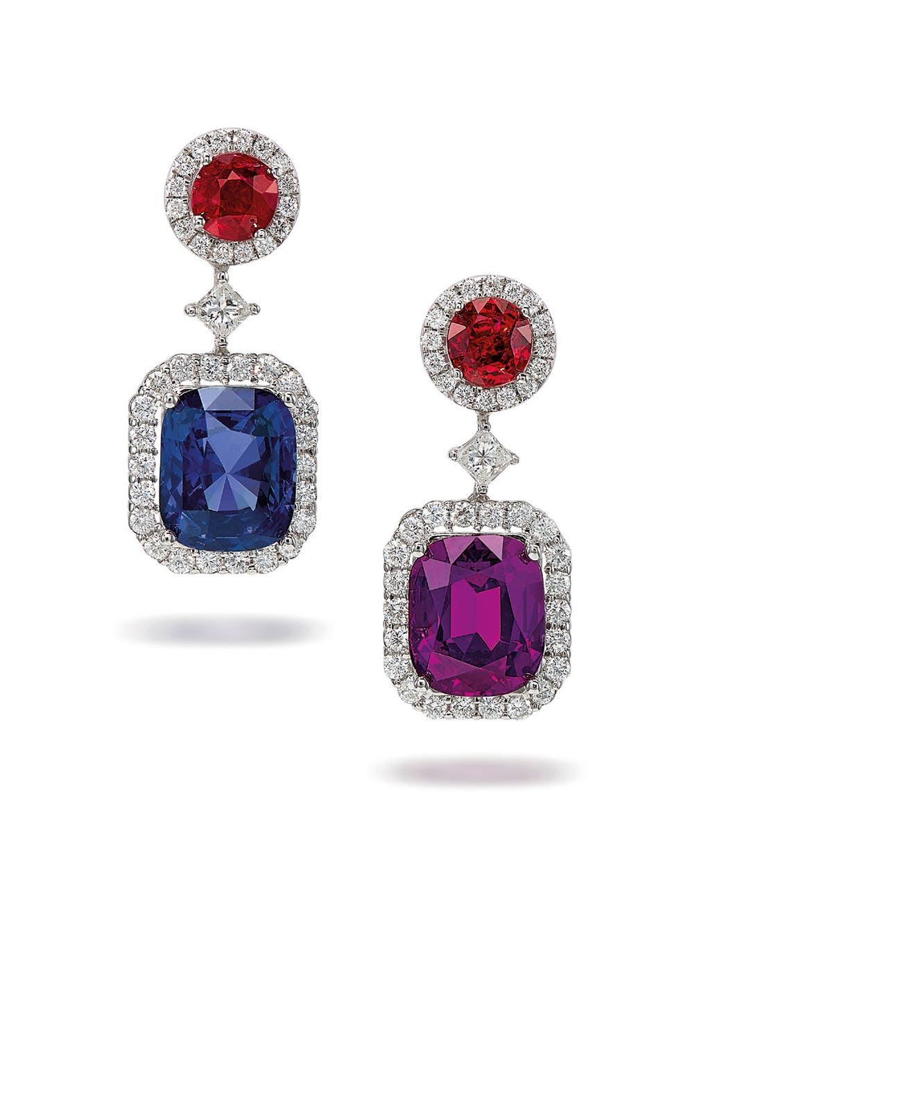 A Pair of Spinel and Diamond Earrings