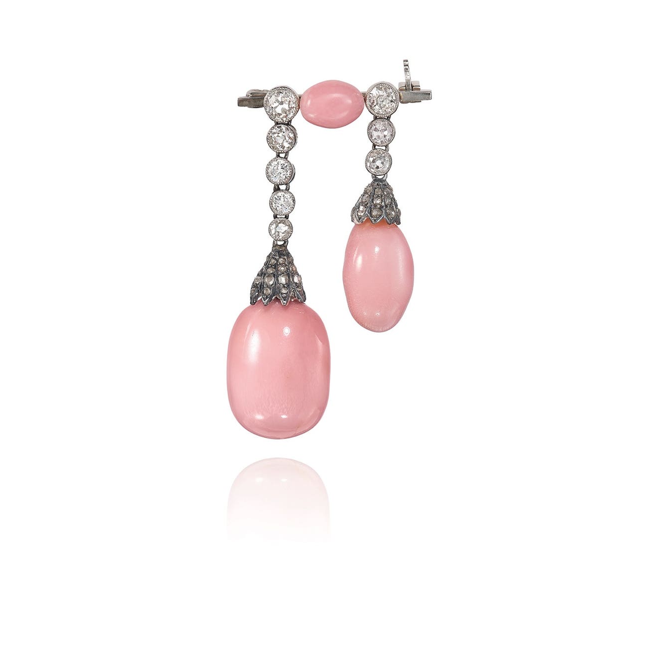 One ovoid-shaped conch pearlOld-cut diamondsWith a signed case and Mikimoto certificate of authenticity