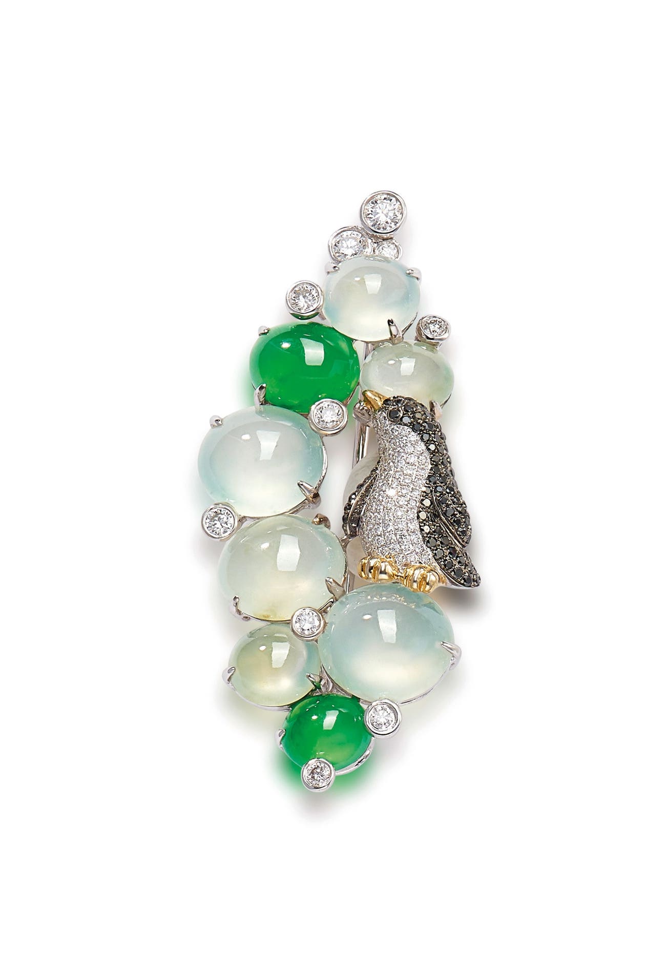 A Jadeite, Coloured Diamond and Diamond 'Penguin' Brooch