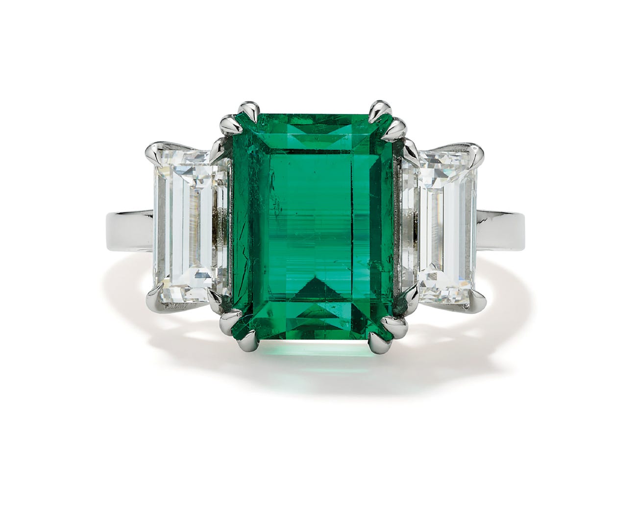 An Emerald, Diamond and Platinum Ring