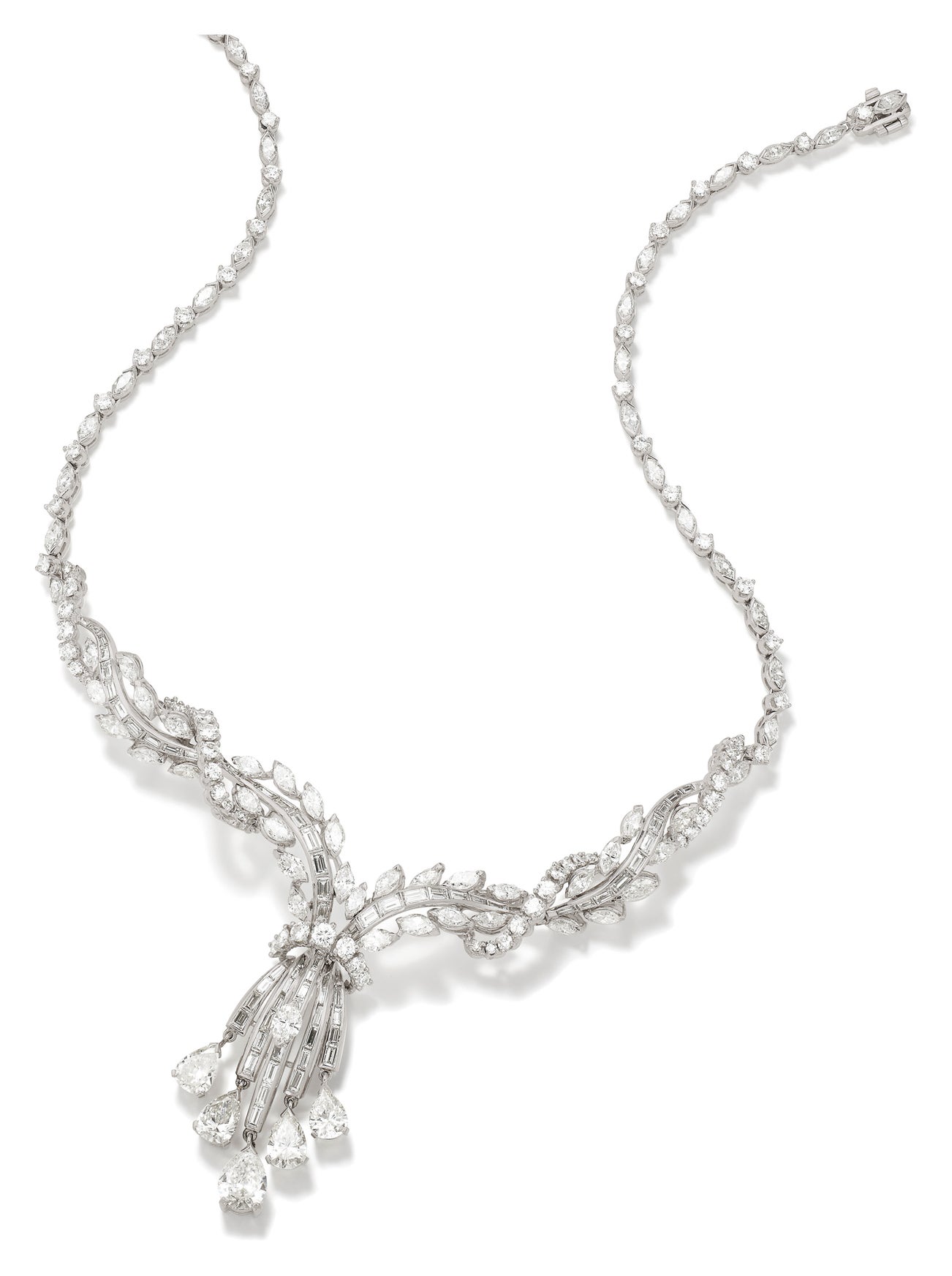 Pear-, marquise-shaped, round brilliant- and baguette-cut diamonds