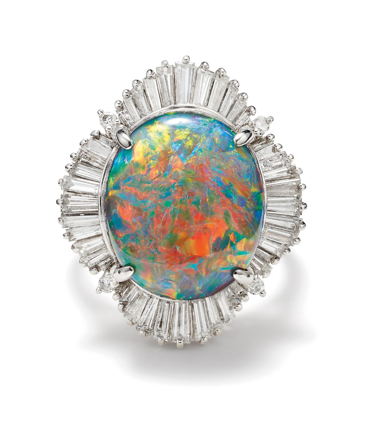 Tapered baguette-cut and round brilliant-cut diamonds, total 2.22 carats