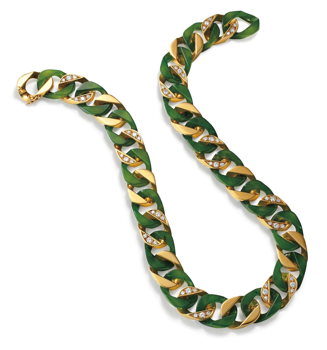 A Nephrite, Diamond and Gold Necklace