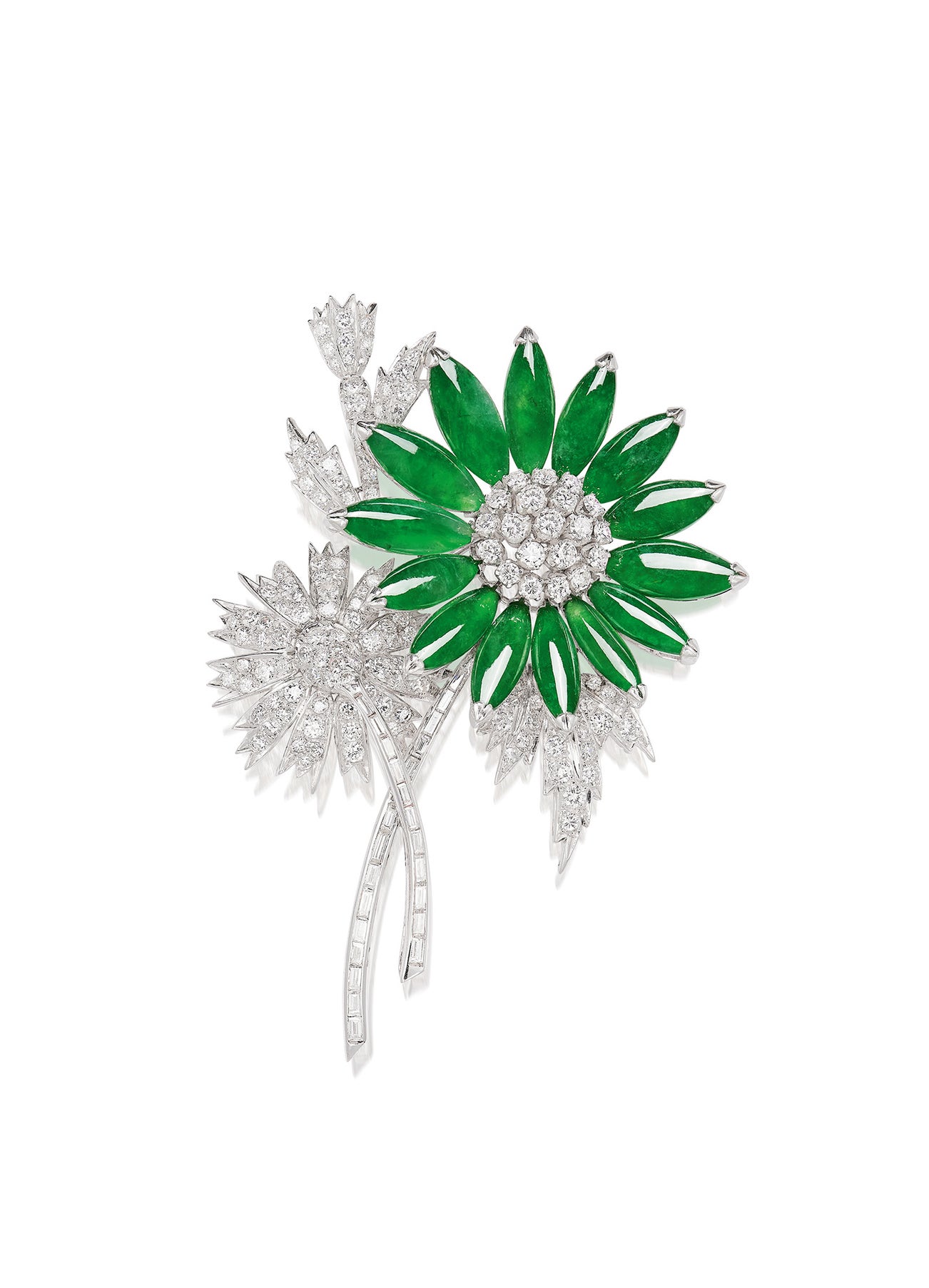 Brilliant and baguette-cut diamonds, approximately 8.20 carats totalPlatinum<em>Hong Kong Jade & Stone Laboratory Report: Type A Jadeite, natural colour without any resin</em>